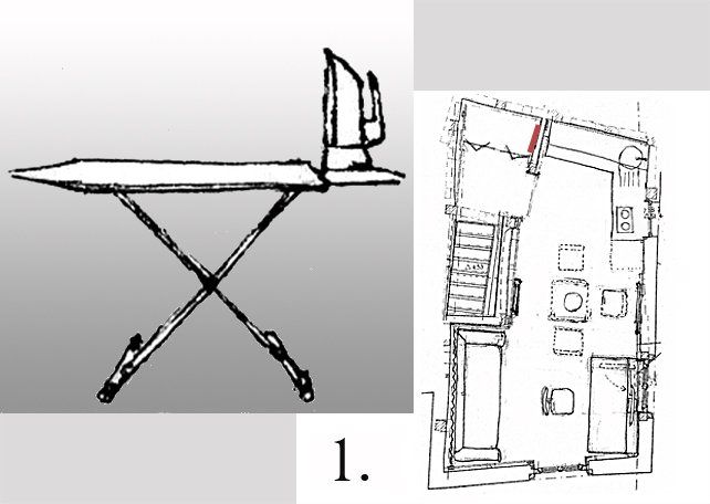 Auch an Bügelbrett und -eisen wird gedacht. Wenn am das Brett nicht braucht, kann es flux unterm Sofa verschwinden.
